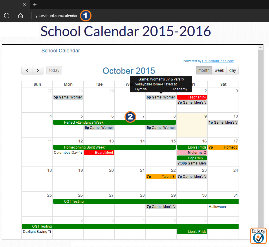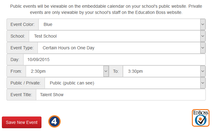 - Create an embeddable HTML school calendar which can be placed directly into your school website. The events marked as private are viewable only by the school staff on your Education Boss website.